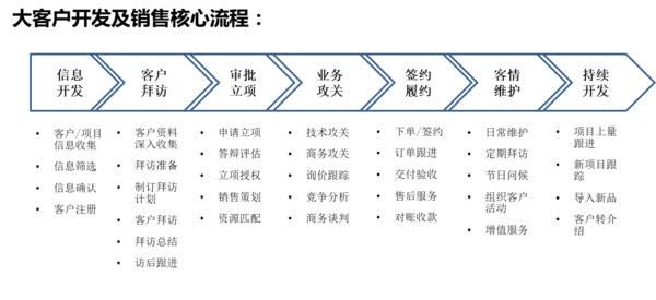 (6) 實(shí)施銷售過程標(biāo)準(zhǔn)化,組織營銷團(tuán)隊(duì)編寫《大客戶銷售SOP手冊》、《普通客戶銷售SOP手冊》,并以此訓(xùn)練銷售團(tuán)隊(duì),實(shí)現(xiàn)人才復(fù)制。