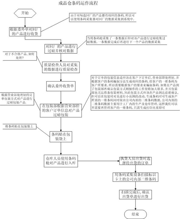 1) 選擇需要委外的生產(chǎn)單送貨至委外供貨商處加工。送貨時(shí)需打印流轉(zhuǎn)卡,并加印二維條碼(相同規(guī)格品號(hào)匯總,包括送貨單號(hào)、委外品號(hào)、顏色、數(shù)量、發(fā)出重量)。流轉(zhuǎn)卡已在打頭過(guò)磅時(shí)產(chǎn)生,重量用手寫(xiě)在流轉(zhuǎn)卡上便可,整個(gè)流程是質(zhì)檢先行檢查并用個(gè)人廠牌登記啟動(dòng)系統(tǒng),再將貼有防油貼紙流轉(zhuǎn)卡在Bar Code Scanner系統(tǒng)內(nèi)輸入pass訊息(ng就不用輸入),電鍍部在用Bar Code Scanner輸入系統(tǒng)時(shí),如拿錯(cuò)質(zhì)檢判為ng的半成品時(shí),系統(tǒng)將會(huì)提出指示及不被接納,其它流程與質(zhì)檢部相若,只是時(shí)間上先后而已,以及加入過(guò)磅自動(dòng)輸入系統(tǒng).