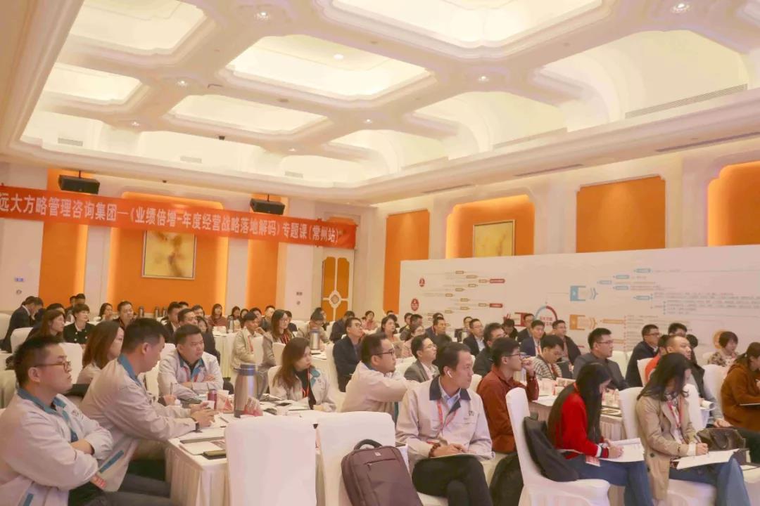 2019年11月15日—16日,遠(yuǎn)大方略《業(yè)績(jī)倍增---年度經(jīng)營(yíng)戰(zhàn)略落地解碼》全國(guó)巡講課第二站,在常州白金漢爵大酒店開講。現(xiàn)場(chǎng)齊聚長(zhǎng)三角100+位企業(yè)董事長(zhǎng)、總經(jīng)理、各事業(yè)部副總等參與本次課程學(xué)習(xí)探討。