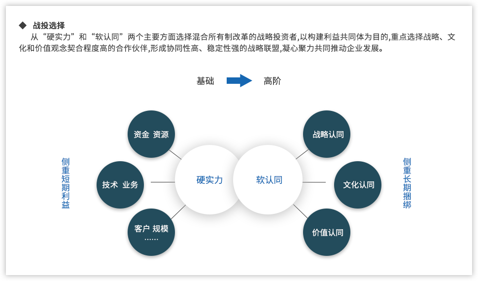 黨的十九大報告指出:“要深化國有企業(yè)改革,發(fā)展混合所有制經(jīng)濟(jì),培育具有全球競爭力的世界一流企業(yè)”;當(dāng)前,隨著國企改革“雙百行動”、區(qū)域性國資國企綜合改革試驗(yàn)、“科改示范行動”、第三批以及第四批混改試點(diǎn)的實(shí)施,國企改革由點(diǎn)向面梯次鋪開、范圍逐步擴(kuò)大,并呈現(xiàn)明顯加速,國有企業(yè)改革進(jìn)入“深水區(qū)”。追本溯源,國企改革到底怎么改,回到國有企業(yè)改革的初衷我們認(rèn)為,國有企業(yè)改革是以混和所有制為手段,在堅持黨的領(lǐng)導(dǎo)下建立現(xiàn)代企業(yè)制度,優(yōu)化管理關(guān)系,創(chuàng)新管理機(jī)制,激發(fā)員工活力,從而最終實(shí)現(xiàn)國有企業(yè)的持續(xù)發(fā)展?;旄穆鋵?shí)到具體實(shí)踐中,便處處是難點(diǎn)。遠(yuǎn)大方略認(rèn)為,混改的重點(diǎn)已經(jīng)從以“政策研究+方案制定”為主轉(zhuǎn)變到以化解落地過程中的實(shí)際痛點(diǎn)為主,從剖析“為什么混、和誰混、怎么混”轉(zhuǎn)變?yōu)槁鋵?shí)治理結(jié)構(gòu)、戰(zhàn)略協(xié)同以及激勵機(jī)制等深層次問題。