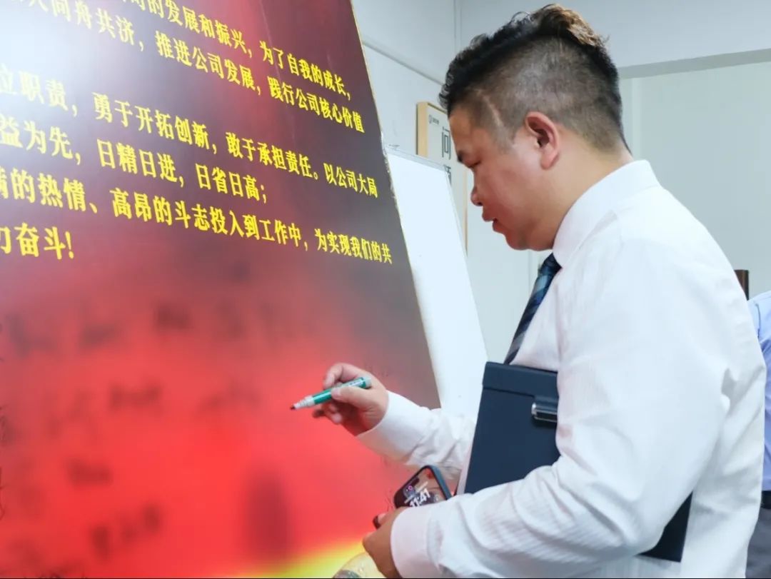 會(huì)上,萬(wàn)總為項(xiàng)目老師頒發(fā)了授權(quán)書(shū)和聘書(shū),帶領(lǐng)項(xiàng)目關(guān)鍵人員在誓詞上簽字并集體宣誓,鼓勵(lì)大家和公司共同成長(zhǎng)進(jìn)步。